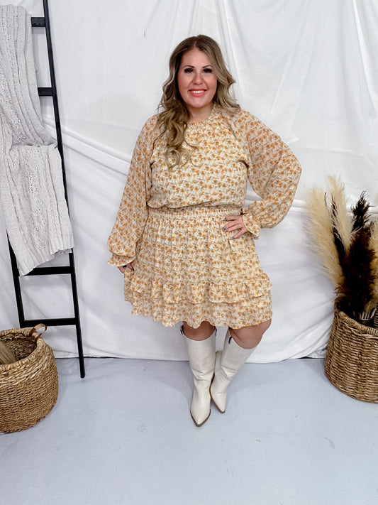 Apricot Floral Print Chiffon Smock Waist Dress FINAL SALE