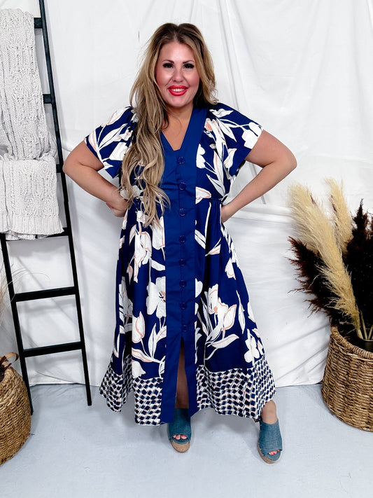 Abstract Floral Print Button Down Midi Dress FINAL SALE