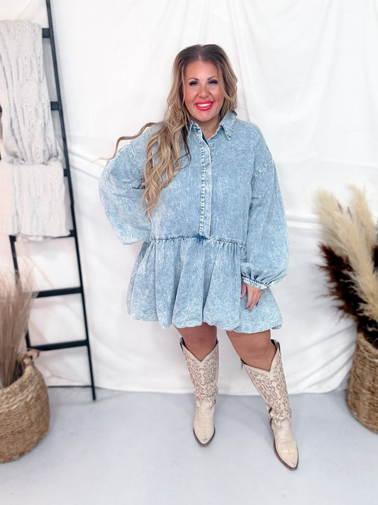 Acid Washed Denim Tiered Mini Babydoll Dress FINAL SALE