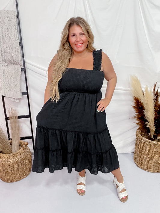 Black Long Sleeve Airflow Tired Dress FINAL SALE